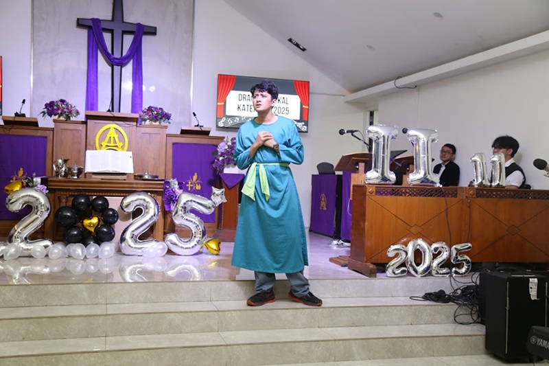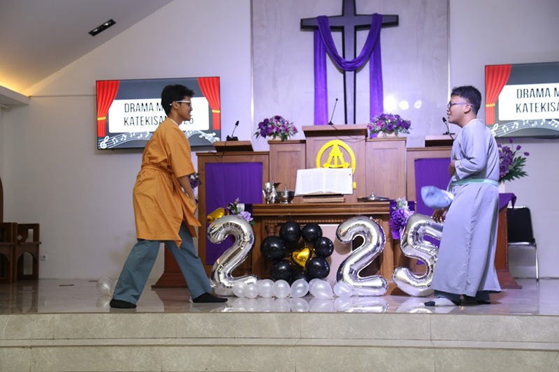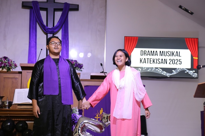 Acara pun dilanjutkan dengan penampilan paduan suara Alumni Katekisasi serta pementasan drama musikal yang merepresentasikan cerita di Alkitab mulai dari Abraham dan Sarah hingga pertarungan David melawan Goliath yang diperagakan oleh ke 11 katekisan