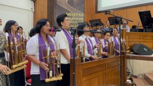 Kiranya Tuhan menolong kita sekalian, amin… dilanjutkan saat hening dan penampilan Angklung Usinda Immanuel dengan pujian Jadilah Teladan Dunia.