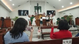 Yang dilanjutkan dengan juara 2 yaitu Komisi Dewasa yang terdiri dari para kaum Ibu, Ibu Indri, Ibu Evi dan Ibu Desi Natalia
