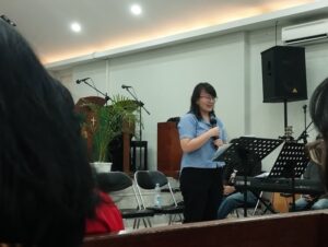 Usai jalan santai para peserta menikmati santap pagi bubur ayam bersama di Gedung RPP samping gereja, yang kemudian dilanjutkan dengan Pagi Puji dan Doa yang dimulai pukul 08.00 yang dipimpin oleh Sdri Claudia AMT, S.Si Teol