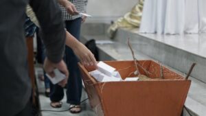 Usai doa syafaat dan nyanyian doa Bapa Kami dilanjutkan dengan persembahan dengan mengambil nas dari injil Mazmur 54 ayat 8 sembari para jemaat dan simpatisan maju ke depan untuk menaruh perpuluhan ke dalam palungan, pemusik memainkan instrumen lagu Hidup Kita yang Benar.