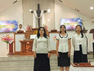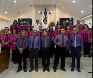 Setelah penyerahan tanda terima kasih kepada Badan Pemeriksa Harta Milik Jemaat, dilanjutkan dengan doa syafaat yang diakhiri dengan doa Bapa Kami yang di nyanyikan bersama.