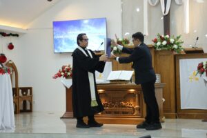 Setelah itu Pdt Dr Charliedus R Saragih, M.M melakukan pengutusan dan berkat kepada jemaat dan simpatisan GKI Camar Bekasi.