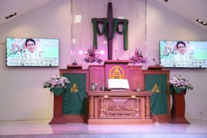 Ibadah pun dimulai dengan pembacaan warta jemaat oleh Penatua Agnes Simatupang yang dilanjutkan dengan menyanyikan lagu Apinya berkobar dalam hatiku…