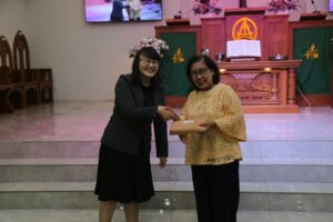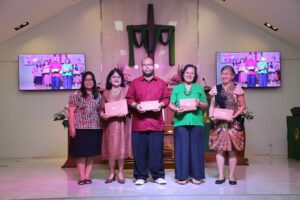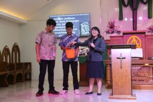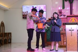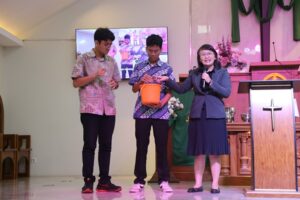 Kemudian dilanjutkan persembahan dengan mengangkat satu pujian Keluarga Hidup Indah yang sebelumnya dibacakan nats dari kitab Amsal 3 ayat 9 hingga 10 setelah itu doa persembahan yang dibawakan oleh Penatuan Susanawati Junus.