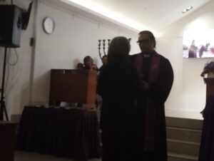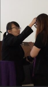 Selanjutnya giliran Sdri. Claudia AMT, S.Si Teol mengolesi abu ke dahi Pdt Dr. Charliedus R Saragih, M.M