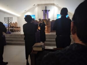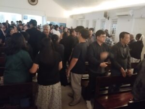 Para jemaat kemudian menyanyikan pujian, Jadilah Terang Kami, usai menyanyikan pujian dilanjutkan dengan doa syafaat yang salah satunya mendoakan keluarga Bapak Martinus Sembiring yang baru kehilangan sang kepala keluarga pada dinihari tadi, semoga dikuatkan dalam segala kondisi.