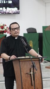 Selanjutnya Pdt Dr Charliedus R Saragih, M.M melakukan doa syafaat dengan beberapa pokok doa