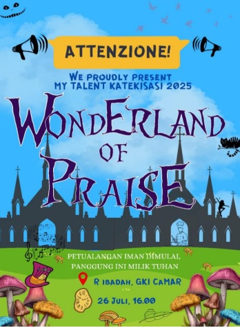 Kami mengundang seluruh jemaat dan keluarga besar GKI Camar untuk hadir dan menyaksikan “Wonderland of Praise“